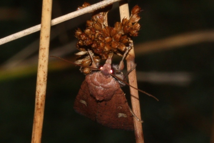 Xestia xanthographa ([DENIS & SCHIFFERMÜLLER], 1775) – Braune Spätsommer-Bodeneule an Binsenblüten. (Foto: Martine Goerigk)