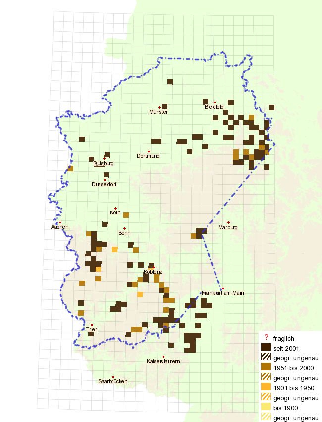 Immerhin stehen nun mit den drei Webseiten des Museums Karlsruhe unter schmetterlinge-bw.de, der Pollichia (schmetterlinge-rlp.de) und den Daten der Arbeitsgemeinschaft unter www.schmetterlinge-nrw.de Verbreitungsdaten von Basel im Süden bis nach Verden an der Aller im Norden im Netz. Ein großes Dankeschön! an alle, die daran mitgearbeitet haben!