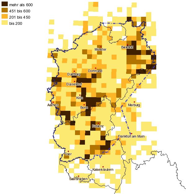 Ein Beispiel an dieser Stelle: Die Karte von Nachweisen des Kleinen Sonnenröschen-Bläulings Aricia agestis zeigt, dass sich die Art in den letzten Jahren anscheinend von Osten kommend über das Ruhrgebiet bis an den Niederrrhein ausgebreitet hat.