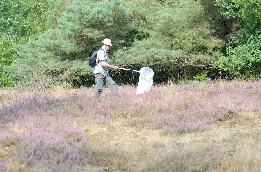„Die Häufigkeit der am Freitag an den Heideblüten gefundenen Faltern hing natürlich sehr eng mit dem schwülwarmen Wetter zusammen, was die Falter zur hohen Aktivität stimulierte. Da haben wir einfach Glück gehabt. In kühlen Nächten sieht man wesentlich weniger Individuen an den Blüten sitzen. Die mit Abstand beste und erfolgreichste Methode zum quantitativen Nachweis der Heidefalter (die in der Regel allesamt schlechte Lichtflieger sind und Aufgrund der konkurrierenden blühenden Heide wenig an den Rotweinköder gehen) ist das nächtliche Abkeschern der Calluna-Bestände im April und Mai, am besten bei leichtem Sprühregen bzw. hoher Luftfeuchtigkeit. Bei kühler Trockenheit kommen viele Raupen nicht hoch zum Fressen. Ähnliches gilt vermutlich für solidaginis an Heidelbeere.