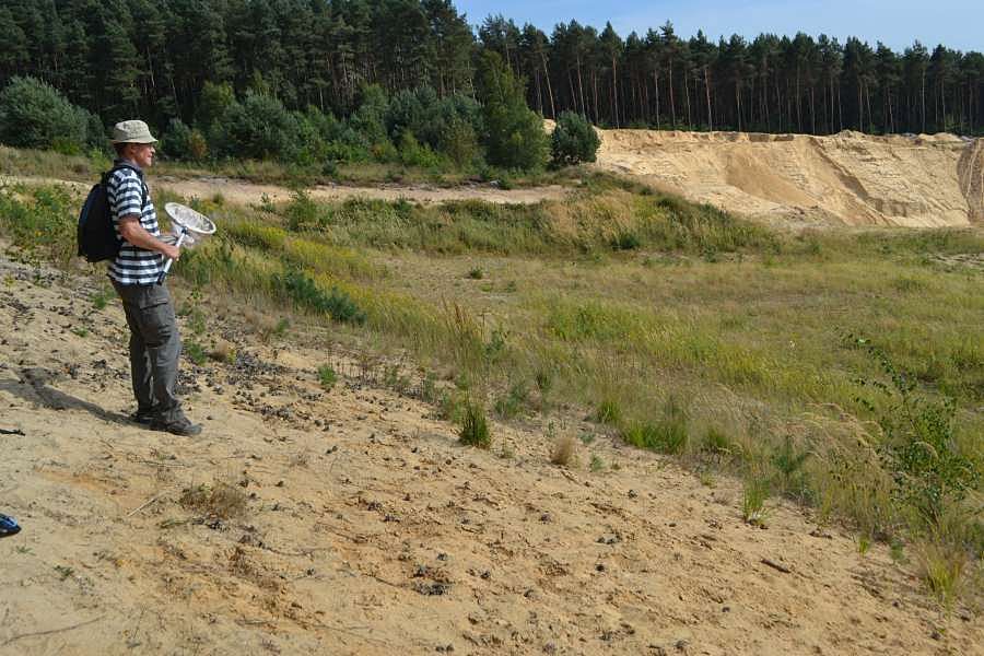 Das Nachmittag- und Abendprogramm bestand aus Vorexkursion und Lichtfang in die Sandgrube Hasler in Oerlinghausen am Aufstieg zum Kamm des Teutoburger Waldes. An dieser auch geologisch interessanten Stelle kommen Kalk im Untergrund und Sand als dicke Auflage zusammen, in der Betriebsfläche stoßen trockene Besenheide-Flächen und Sandmagerrasen aufeinander und bilden einen für Insekten wie Entomologen höchst interessanten Lebensraum.