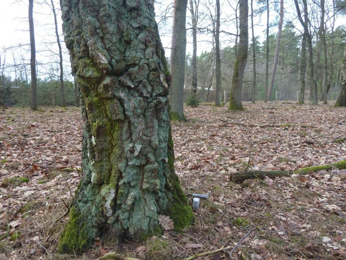 Lebensraum von Narycia duplicella: Mit Krätzflechte bewachsene alte Bäume. 6/7. März 2017 (Foto: Dieter Robrecht)