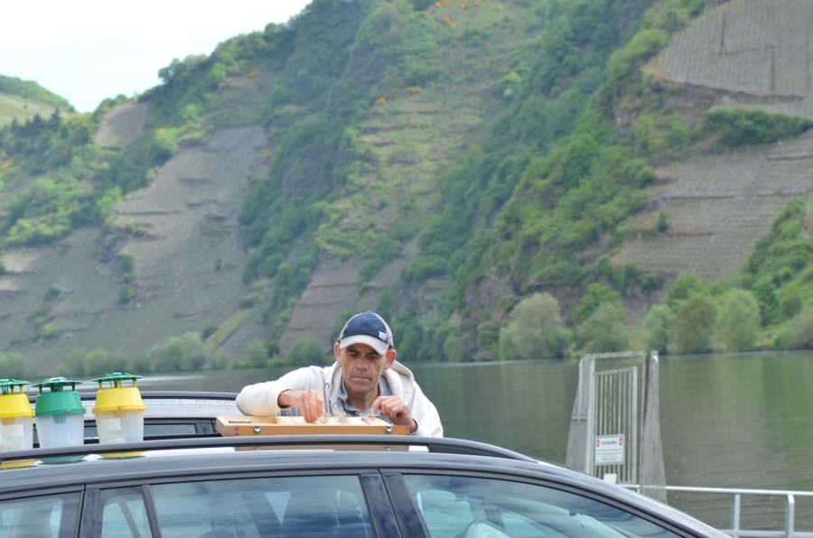 - Armin Radtkes (auto)mobiler Arbeitsplatz vor der Moselloreley, 21. Mai 2017 (Foto: Armin Dahl)