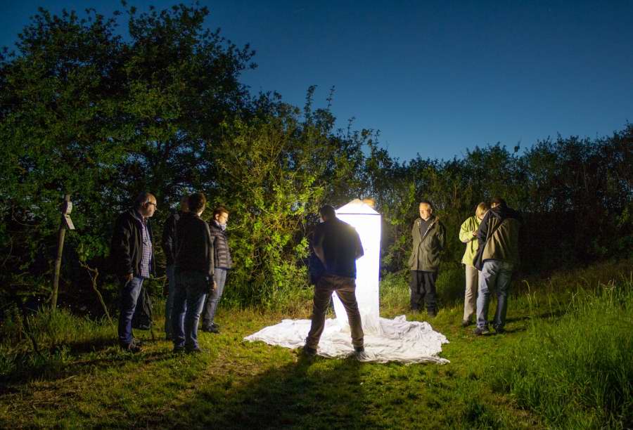 - Viele Forscher, fehlende Falter: Lichtfang auf der Moselloreley, 21. Mai 2017 (Foto: Maik Palmer)