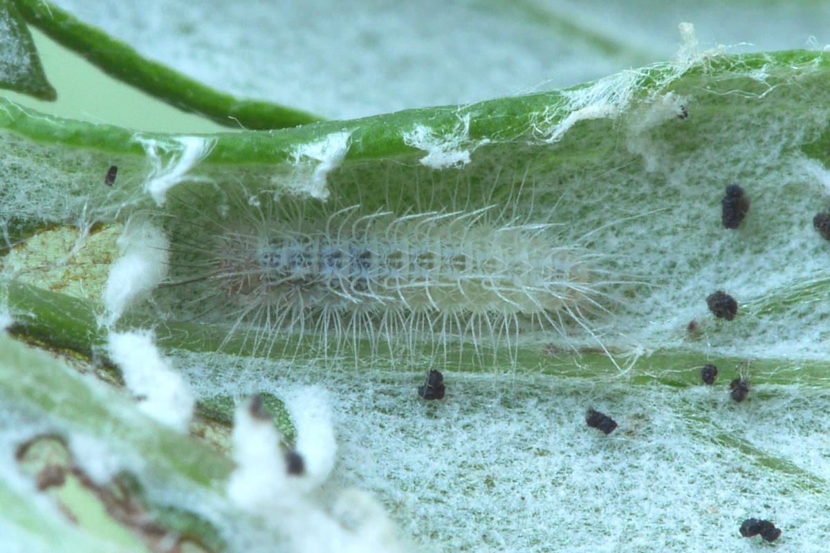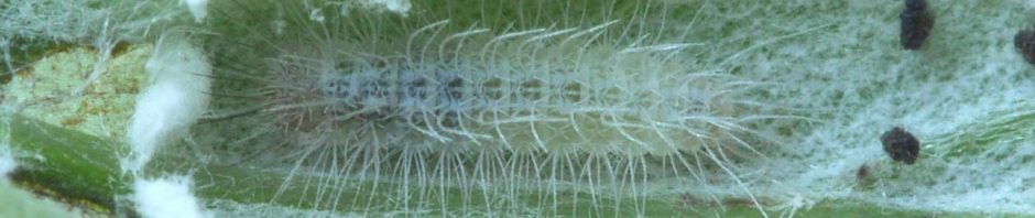 - Bucculatrix noltei, freigelegte Raupe, Oktober 2015 (Foto: Dieter Robrecht)