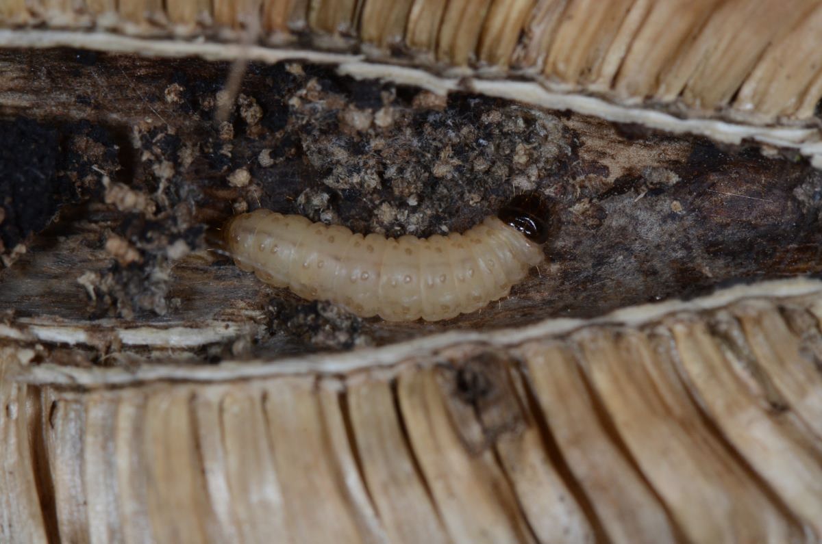 Raupe von Endothenia gentianaeana , Erftstadt, Gymnicher Mühle, 12. Februar 2018 (Foto: Armin Dahl)