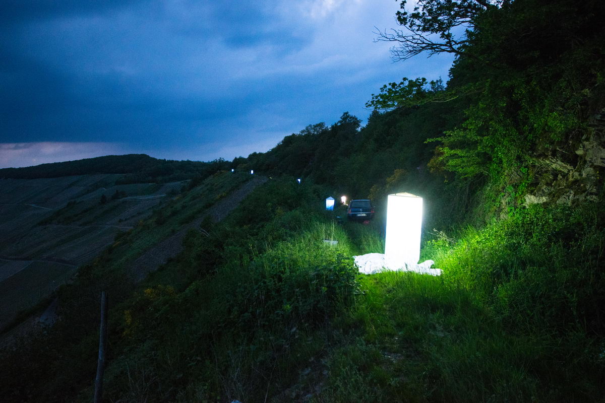 Sechs Leuchttürme in den Weinbergen bei Leiwen (17.05.2019, Foto: Tim Laußmann).