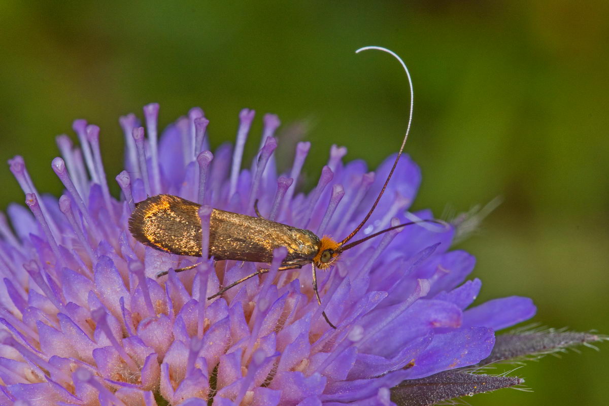 Lebt an Witwenblume: Nemophora metallica (Dhrontal, 18.05.2019, Foto: Tim Laußmann)