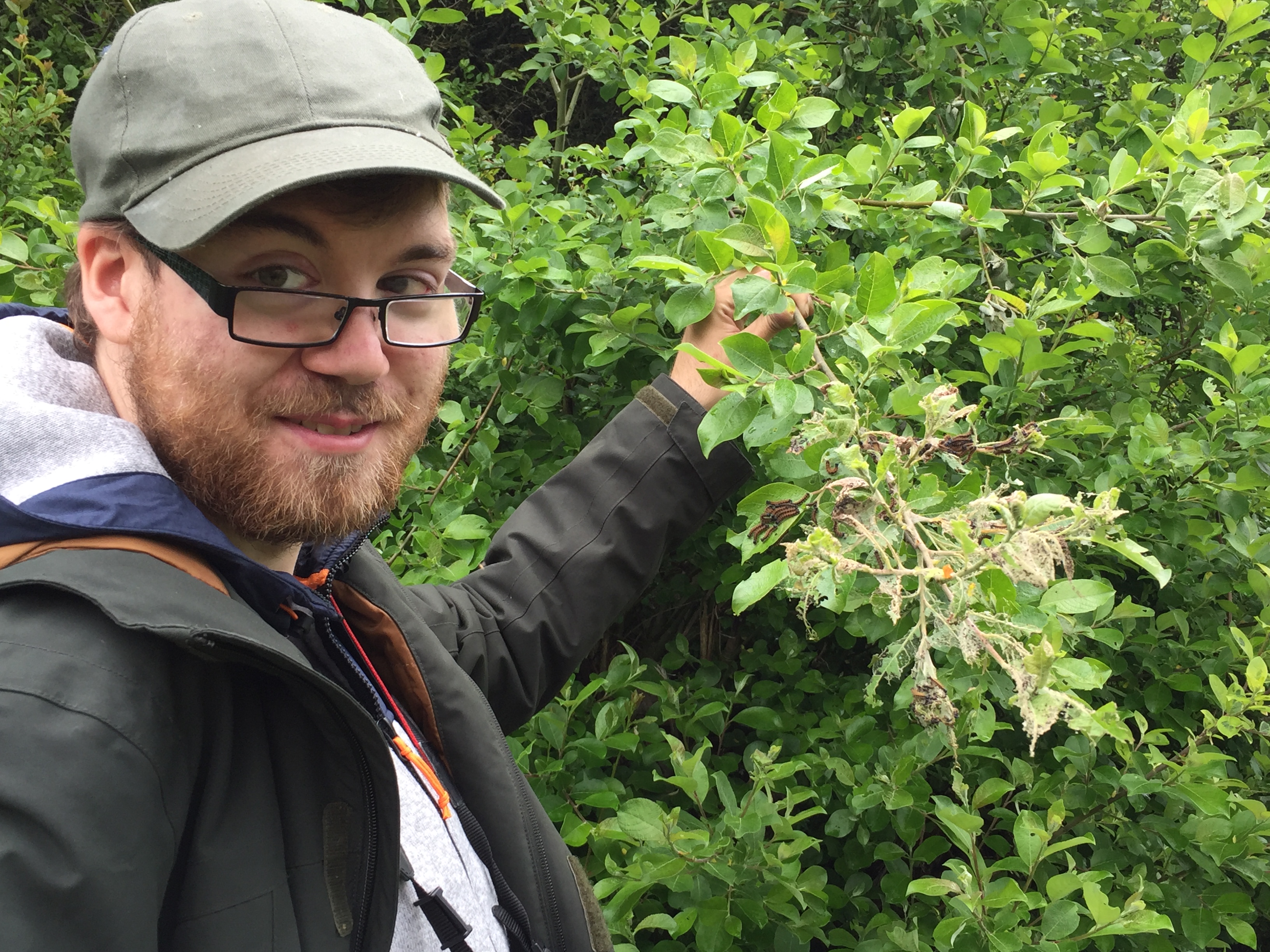 Jonas und das Raupennest vom Großen Fuchs. Neumagen, Moselsteig, 18. Mai 2019 (Foto: Armin Dahl)
