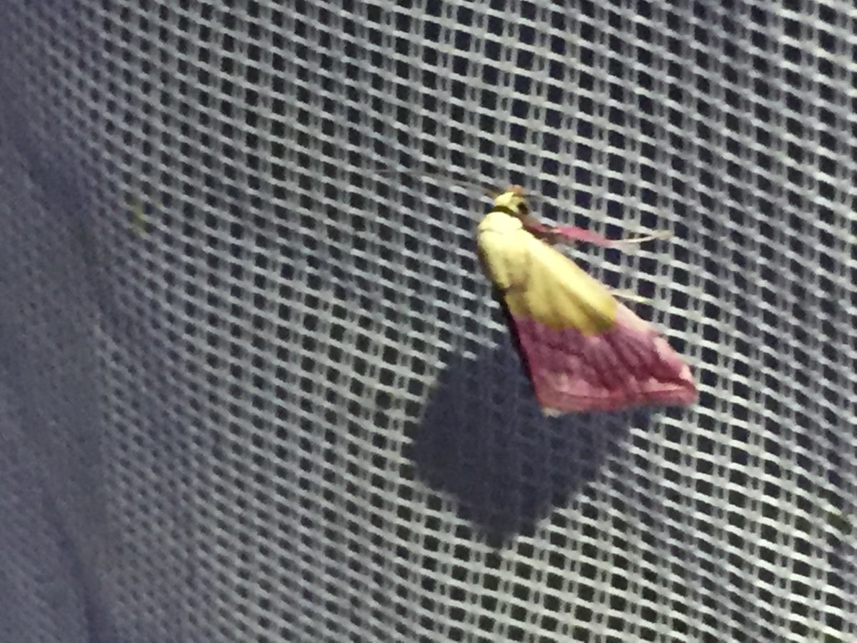 Fliegt auch bei Regen: Das Purpur-Zwergeulchen Eublemma purpurina, Schweich, 19. Mai 2019 (Foto: Armin Dahl)