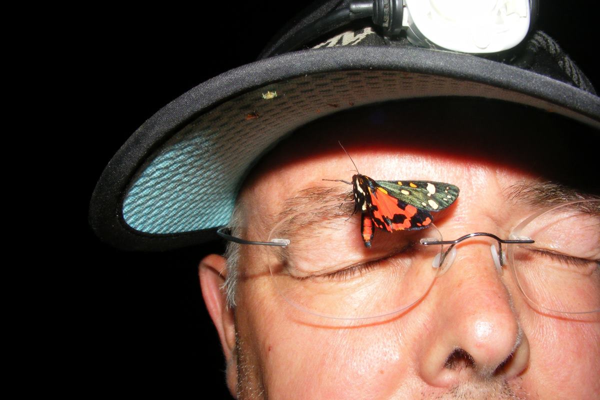 - Callimorpha dominula, angelockt von der Stirnlampe. (Foto: Remco Vos)