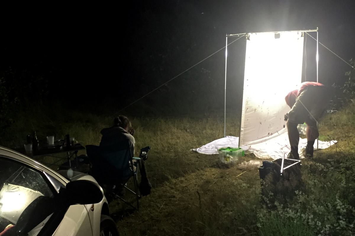 In den Tagen um die Sommersonnenwende herum kann so ein Leuchtabend richtig anstrengend werden, mehr als 100 Arten Großschmetterlinge sind dann die Regel: Erst nachts um 23.00 Uhr wird es dunkel genug für den Lichtfang, und morgens um halb vier, wenn die Vögel schon wieder pfeifen, kommen immer noch neue Arten hinzu.
