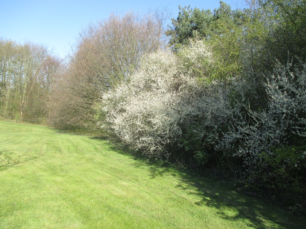 Bild 1: Am 6.4.2020 in Vollblüte stehende Schlehen auf dem Golfplatz Düsseldorf Hubbelrath, ein Fundort von R. chloerata