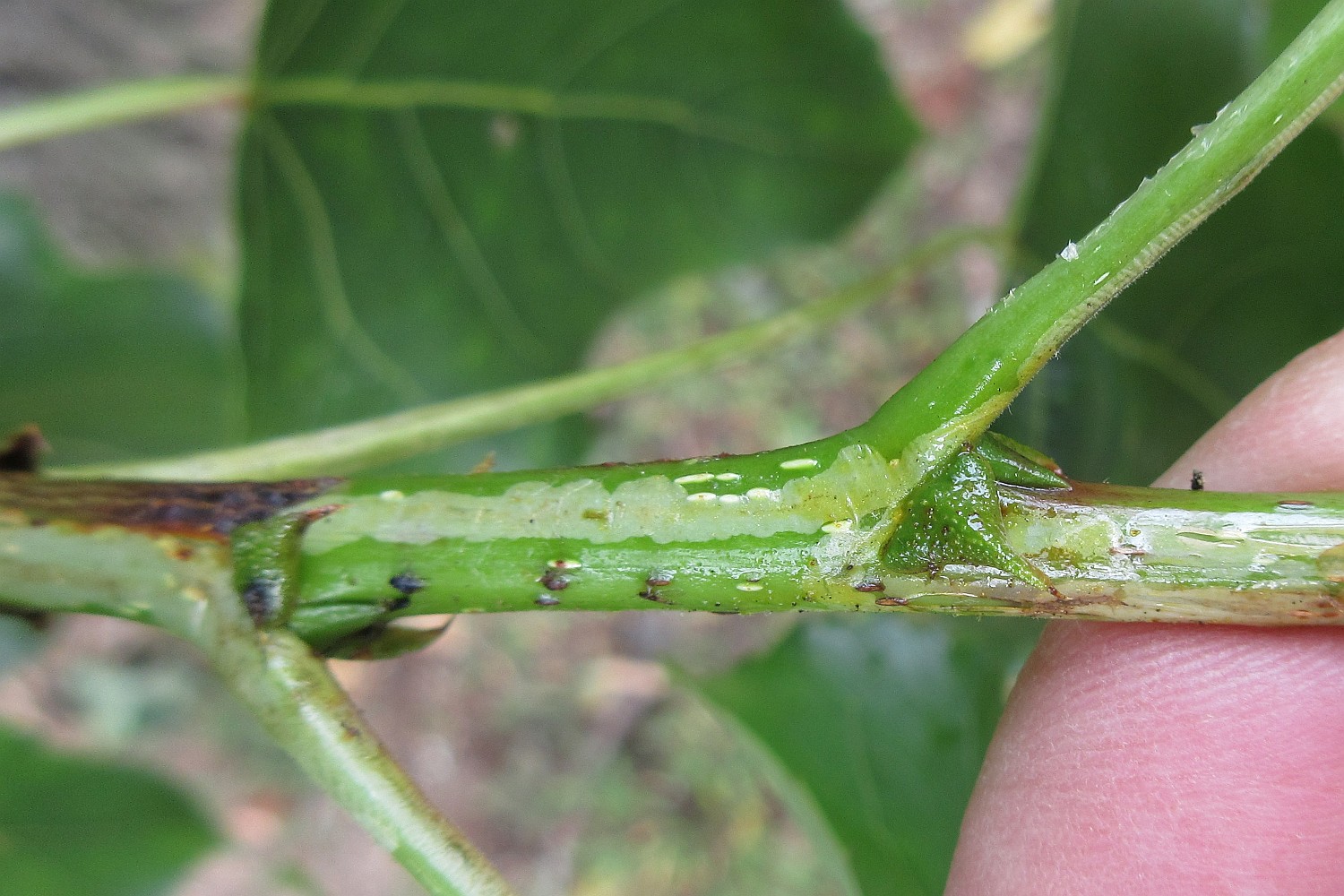 Phyllocnistis extrematrix Minen im Zweig Köln, 8. August 2021 (Foto: Jörg Siemers)