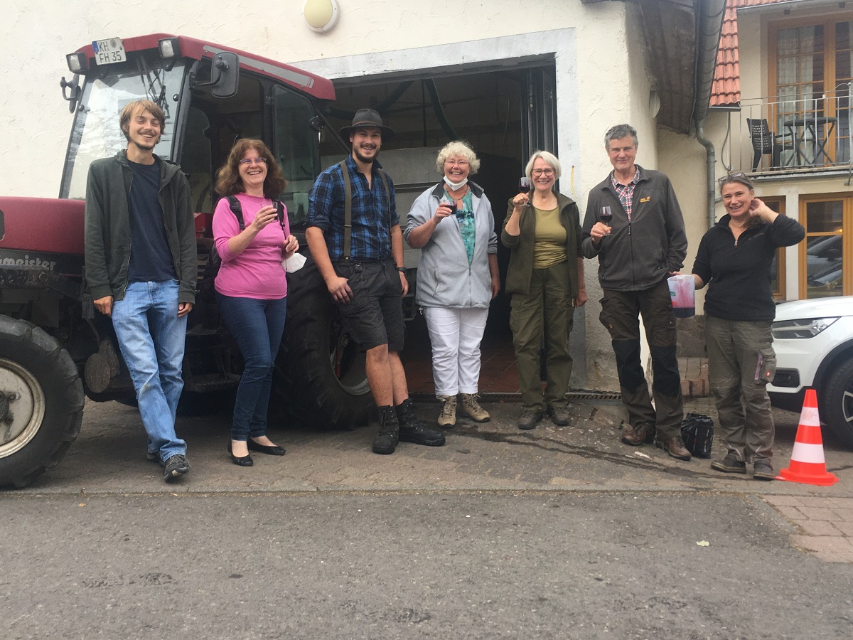 Nach der Arbeit: „Hilfe“ bei der Weinlese im Weingut Felsenberghof (Foto: Dahl)