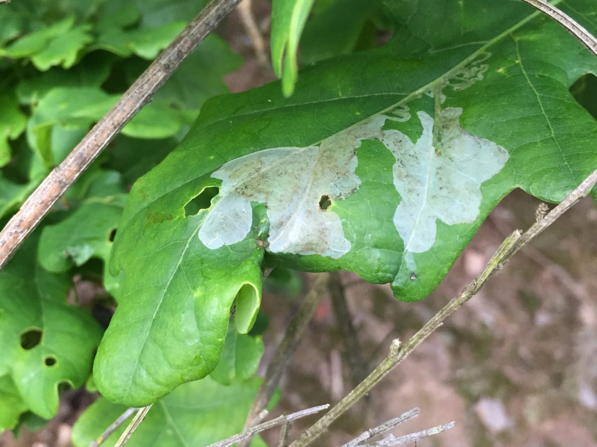 oberseitige „Silberminen“ auf Eiche, Schweich, 19. Mai 2019 (Foto: Armin Dahl)