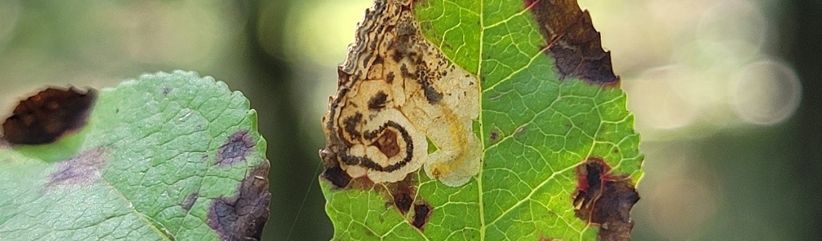 Mine von Stigmella myrtillella, Foto: Dieter Robrecht. Beitragsbild, beschnitten